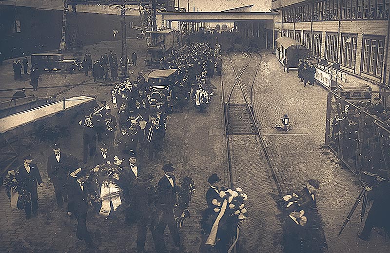 Trauermarsch für Kommodore Nikolaus Johnsen bei der Ankunft der Europa