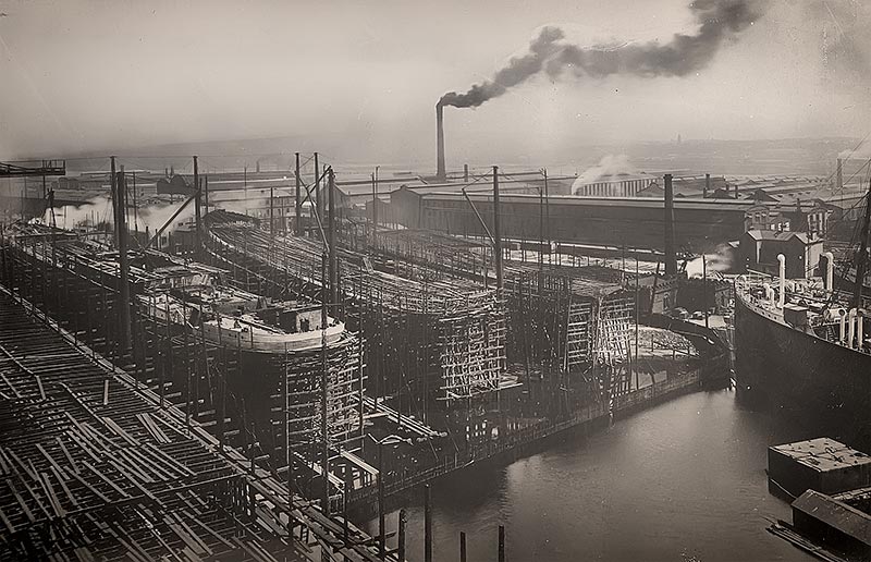Durch ein schlimmes Feuer im Jahr 1896 wird es notwendig die Werft neu zu ordnen. Außerdem wird es notwendig neue Helgen zu bauen, um die gigantischen Oceanliner bauen zu können, die von den Reedereien bestellt werden.