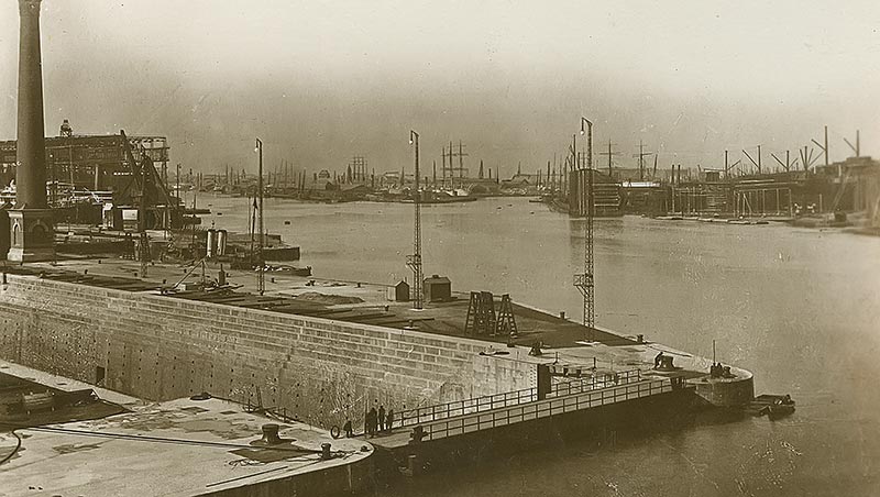 1867 wird ein neues Dock eröffnet das Queens Island nun auch mit dem Festland verbindet.